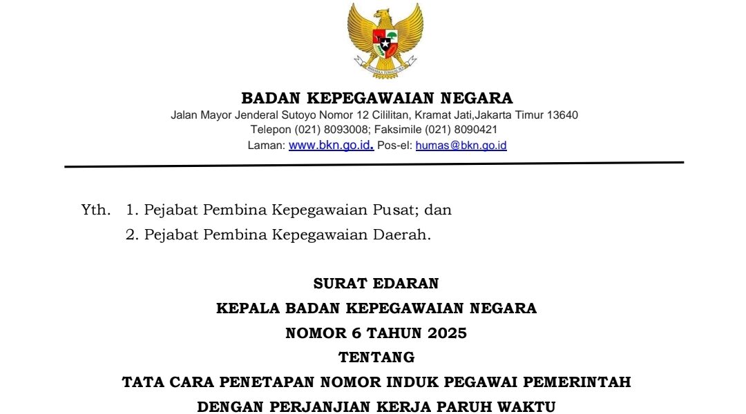 CILEGON, 5 Oktober 2025 – Kabar penting bagi para guru Pegawai Pemerintah Non-Aparatur Sipil Negara (Non-ASN) di Kota Cilegon. Badan Kepegawaian Negara (BKN) telah menerbitkan Surat Edaran (SE) Kepala BKN Nomor 6 Tahun 2025 yang mengatur secara detail tentang Tata Cara Penetapan Nomor Induk Pegawai Pemerintah dengan Perjanjian Kerja (NI PPPK) Paruh Waktu.