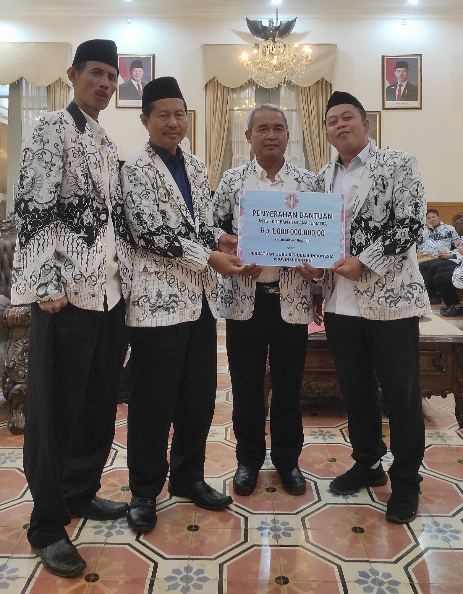 “Kami hadir membawa amanah dari para guru di Banten. Donasi Rp1 Miliar ini adalah bentuk empati kolektif kami. Kami berharap bantuan ini dapat meringankan beban saudara-saudara kita yang tertimpa musibah di Sumatera,” ujar Dr. H. Jamaludin, M.Pd.