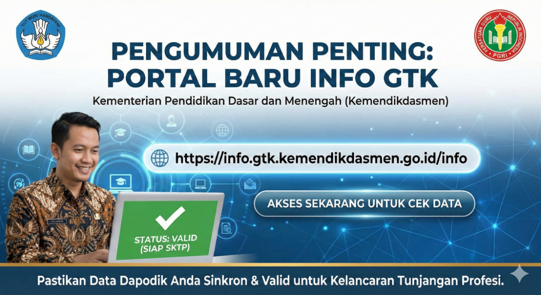 Tautan tersebut adalah portal resmi Info GTK (Informasi Guru dan Tenaga Kependidikan) yang kini berada di bawah naungan kementerian baru, yaitu Kementerian Pendidikan Dasar dan Menengah (Kemendikdasmen).