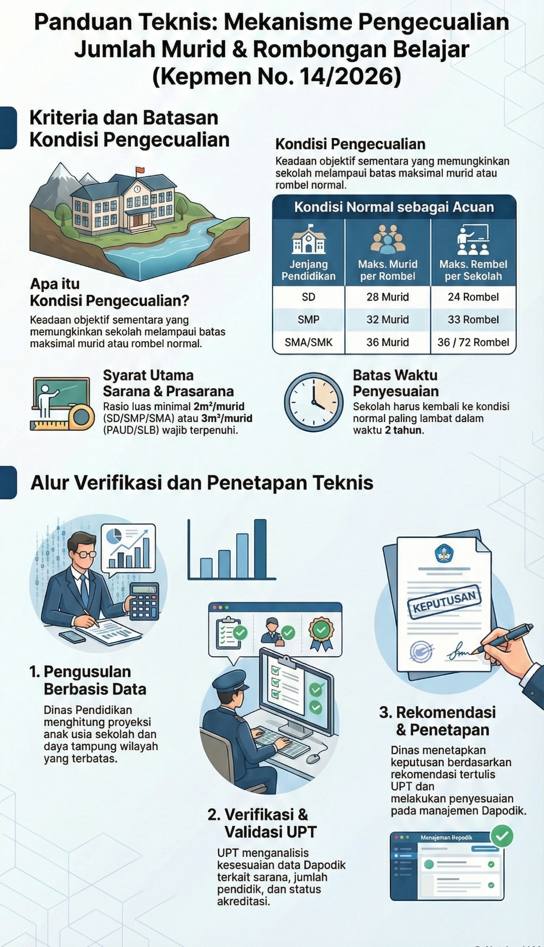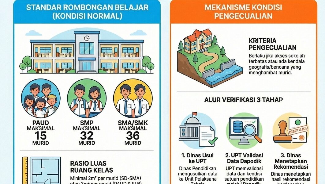 Aturan ini juga mengatur “Kondisi Pengecualian” bagi wilayah dengan keterbatasan akses atau terdampak bencana. Namun, PGRI Cilegon mengingatkan agar klausul ini tidak dijadikan celah untuk menumpuk siswa melebihi kapasitas tanpa alasan yang objektif.