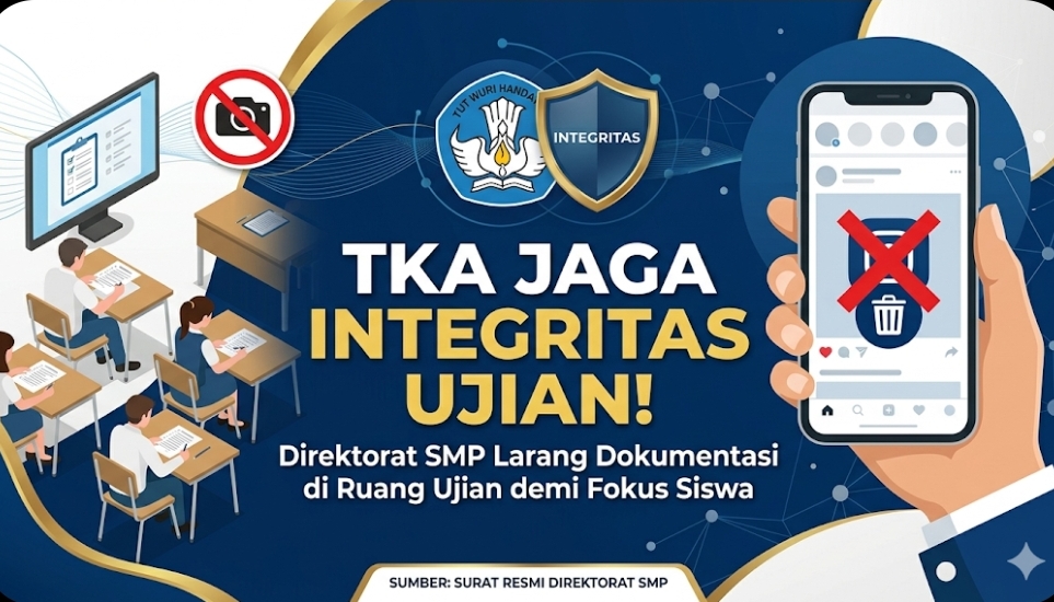JAKARTA – Direktorat Sekolah Menengah Pertama (Direktorat SMP) mengeluarkan imbauan tegas terkait pelaksanaan Tes Kemampuan Akademik (TKA) Gelombang 3 dan 4. Langkah ini diambil menyusul adanya temuan pelanggaran berupa pengambilan foto dan video di dalam ruang ujian selama pelaksanaan Gelombang 1 dan 2.